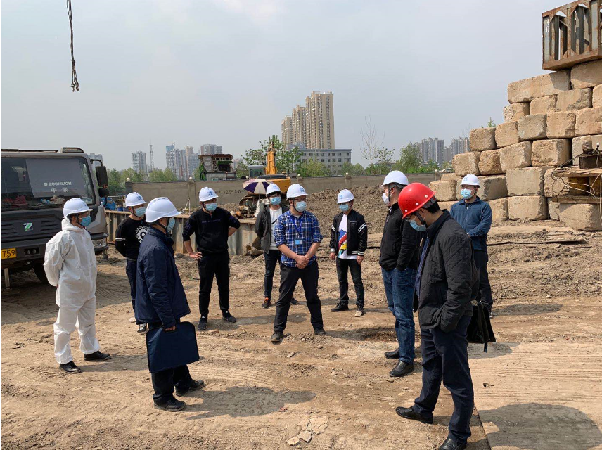 公司領導高度重視防疫及安全生產工作,先后帶領安全生產監督部和項管部相關人員,對關山村城中村改造K26地塊、大悅城控股孔雀城·錦云航天府二標段、二七沿江商務核心區北片24號地塊項目樁基礎及基坑圍護工程、新港臨江匯基坑支護工程、金地朗悅里項目樁基及基坑工程、金地格林夢想一期項目基坑支護工程、漢口客運中心樁機與基坑工程和長江中心項目B4地塊樁基工程等8個項目開展現場檢查。